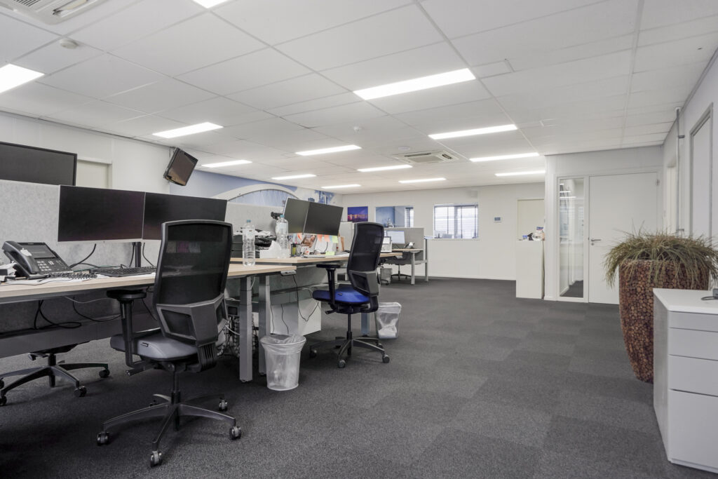 Indeling: kantoortuin, twee afzonderlijke kantoren, eigen kantine/keuken en toiletten